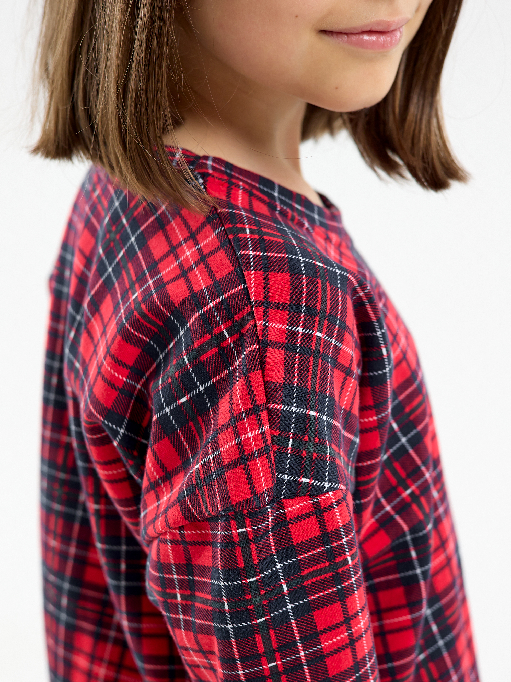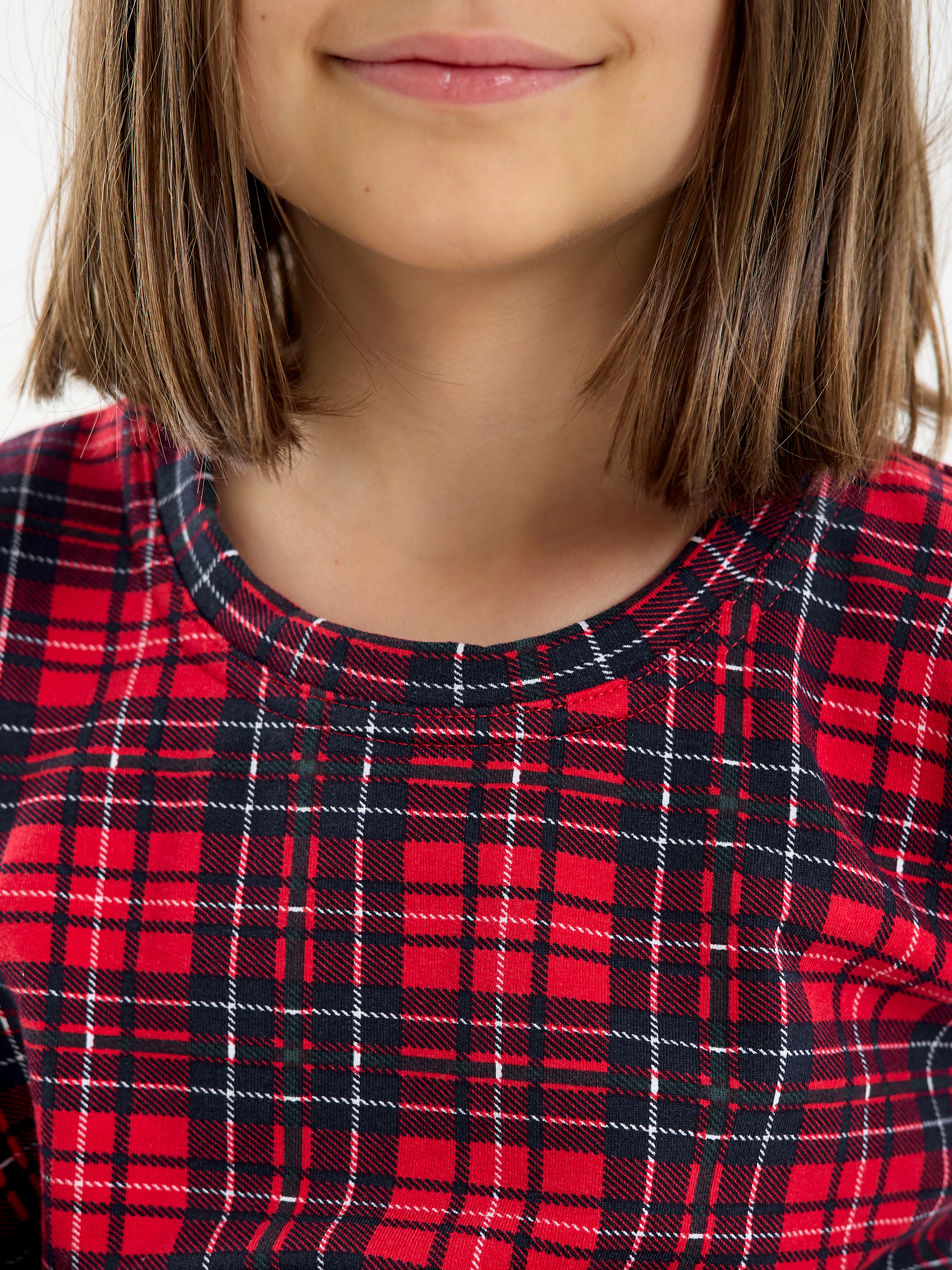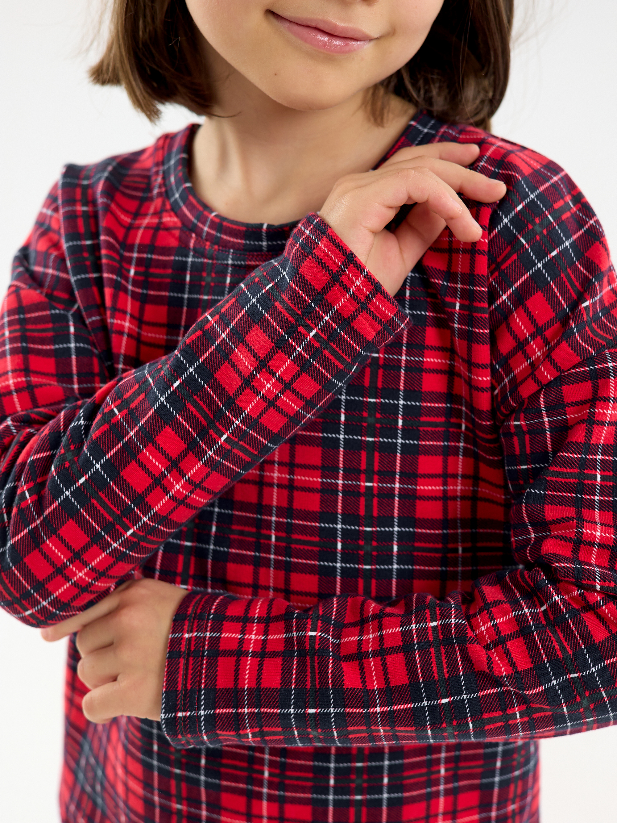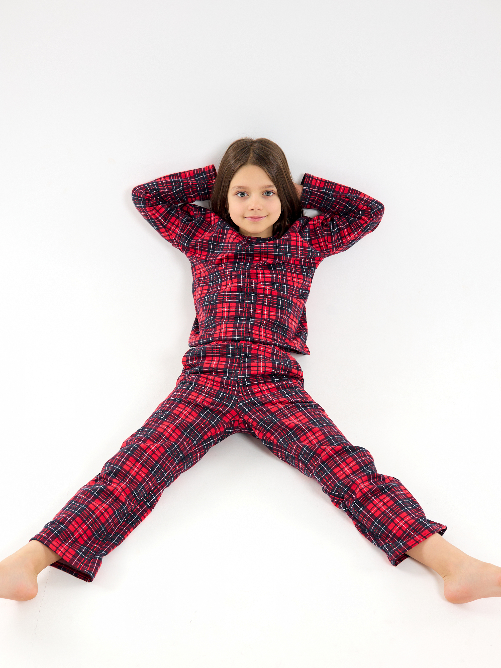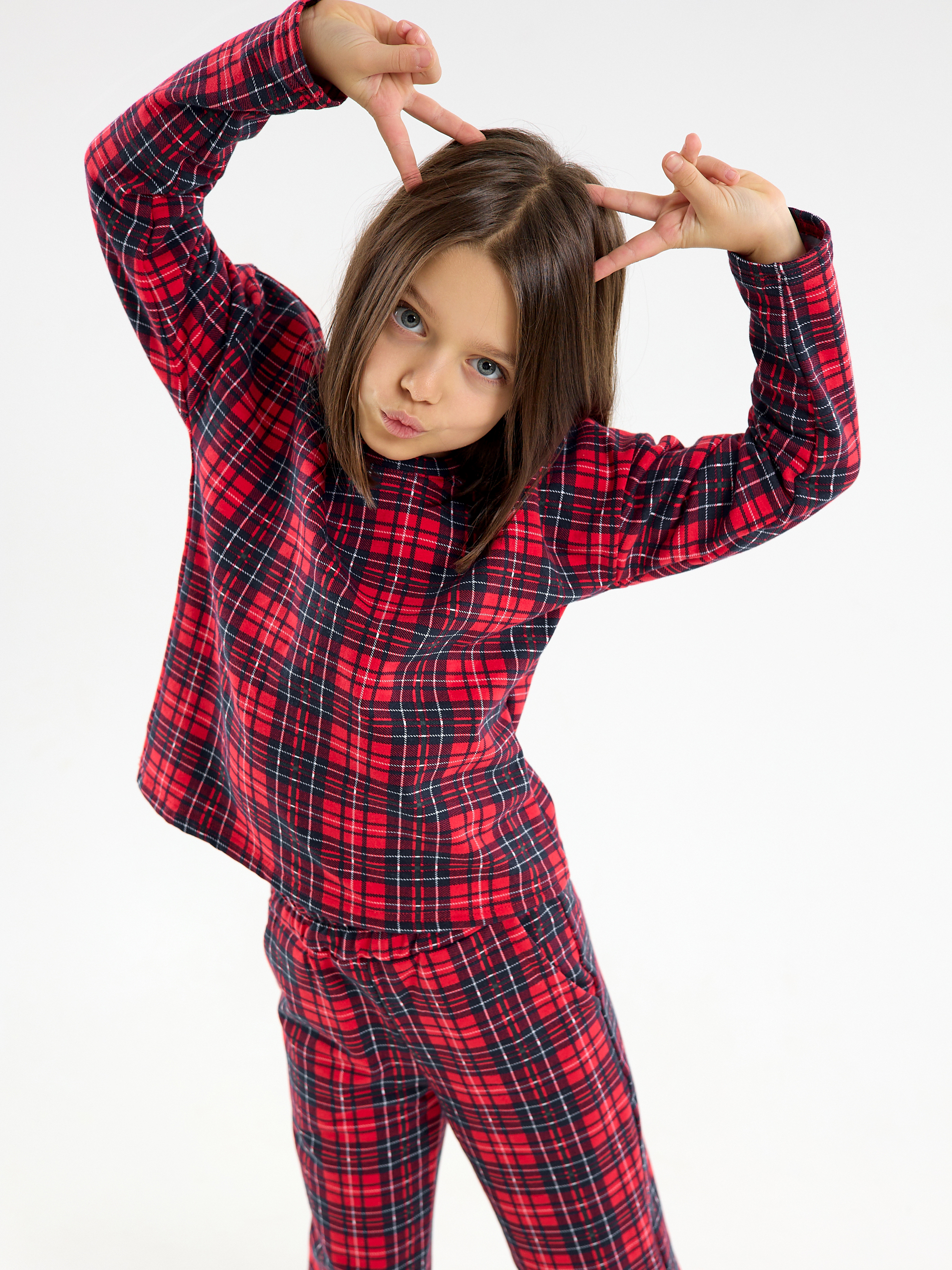 Милая яркая расцветка в трендовую красную клетку и продуманная посадка делают костюм универсальным для детей разных возрастов: малышей, подростков, девочек и мальчиков. Подходит для домашней одежды, садика, семейных праздников, новогодней ночи, а также для создания красивых семейных луков на фотосессии. Пижама не стесняет движений благодаря длинным рукавам и штанам, а кофта из футера с начесом дарит дополнительный комфорт даже самым маленьким.