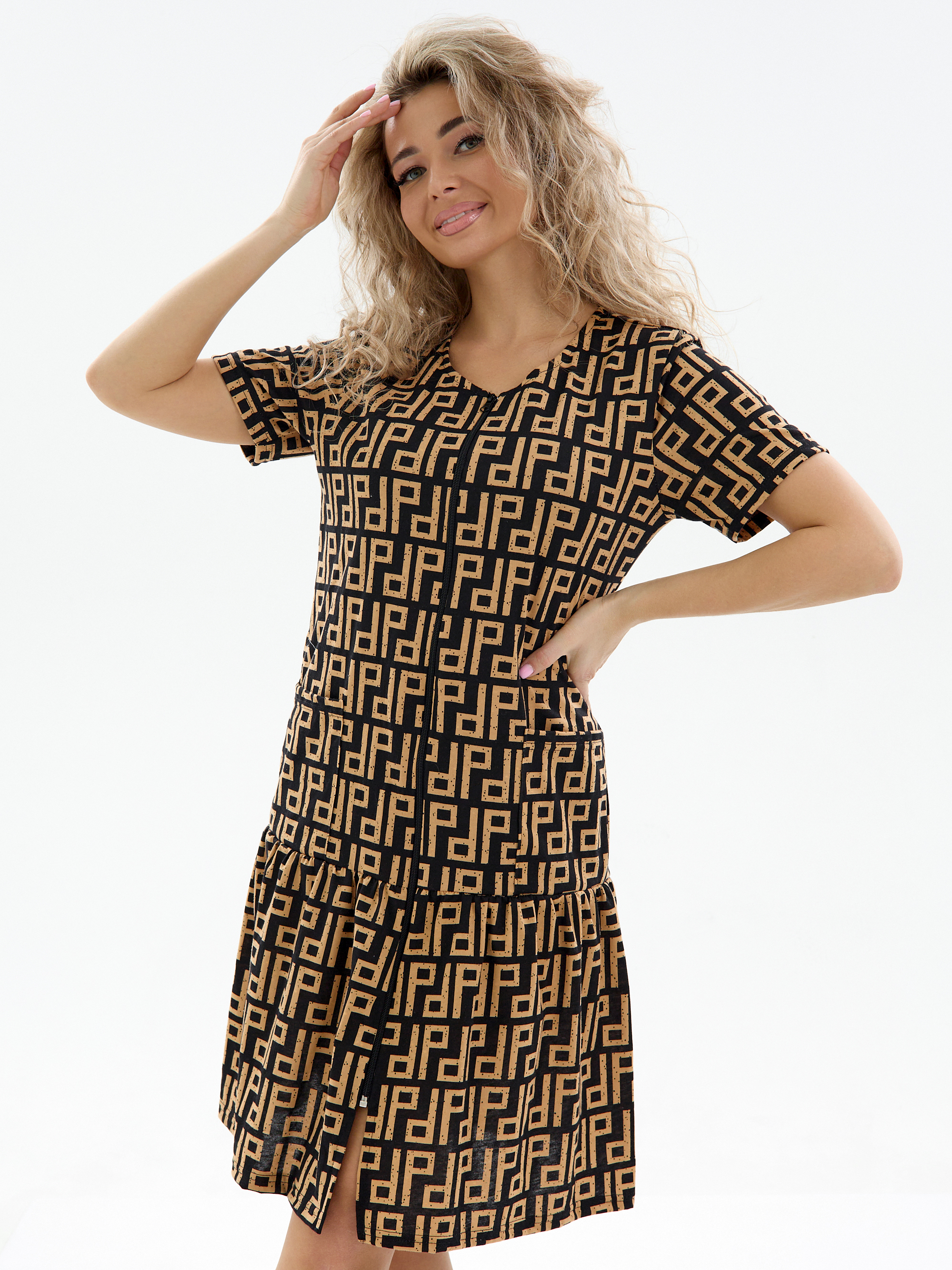 Женский халат из кулирки на молнии Орнамент