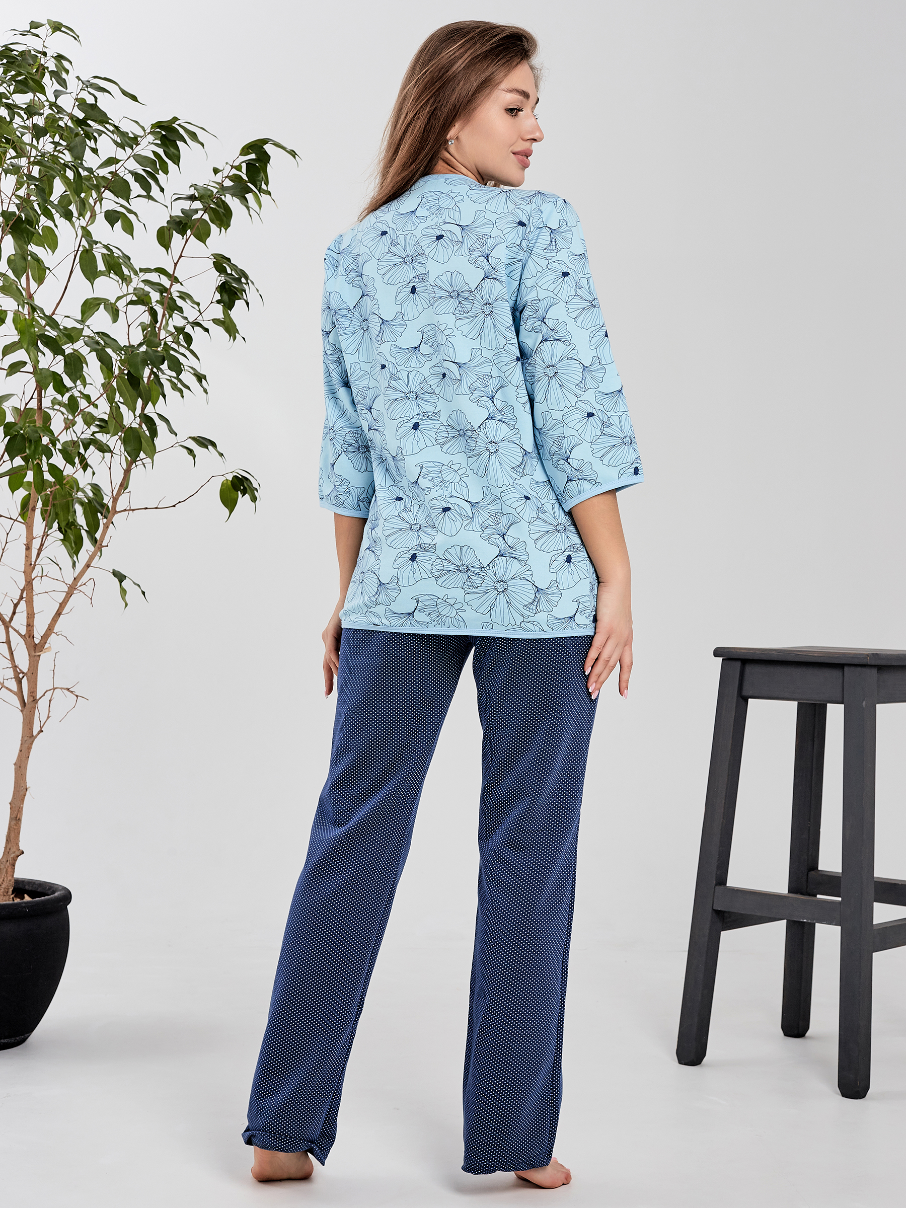 Пижама с пуговицами из футера женская