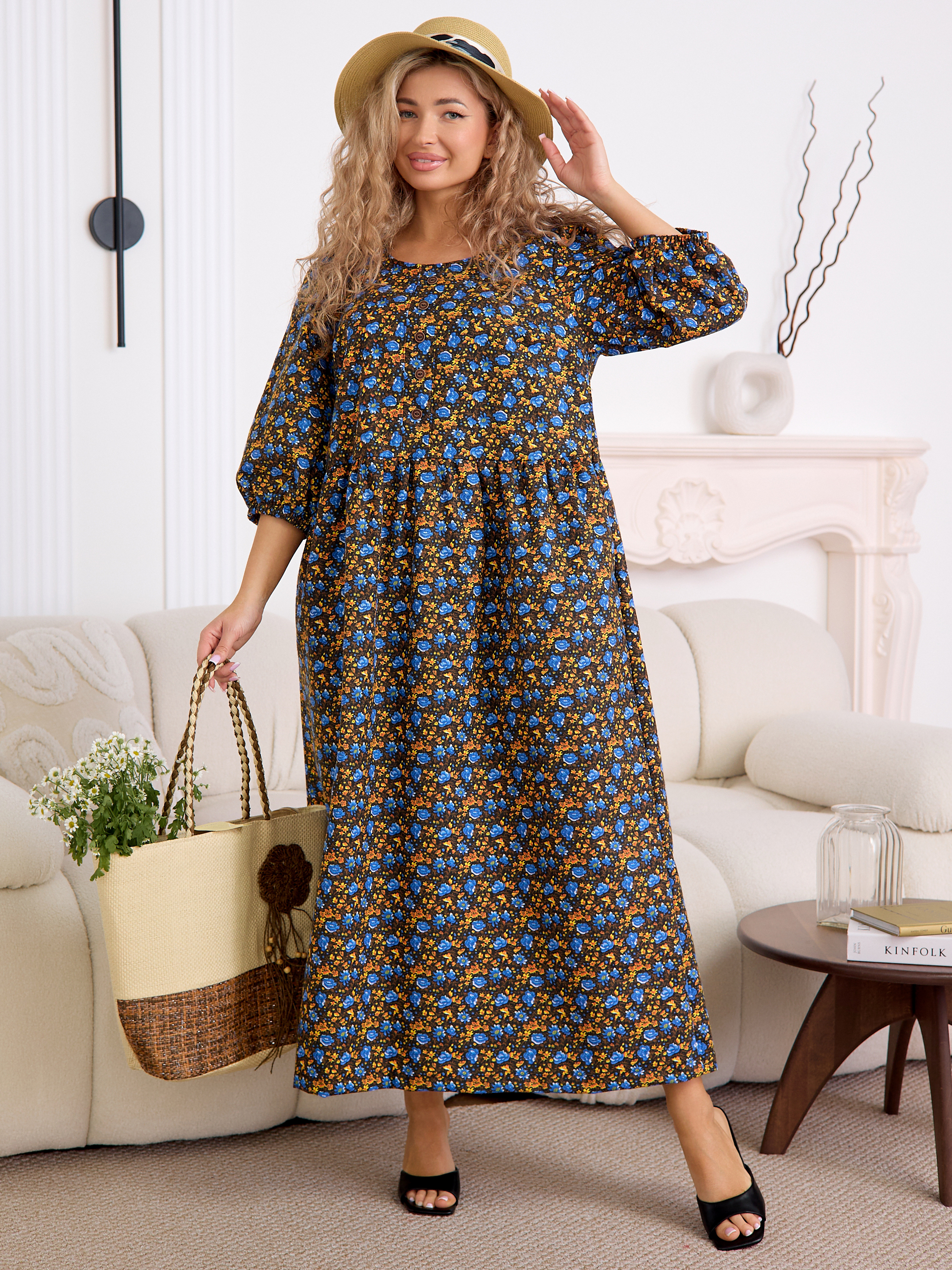 Рукав 3/4 с резинкой внизу — практичная и стильная деталь, которая завершает образ в духе «платья-крестьянки».